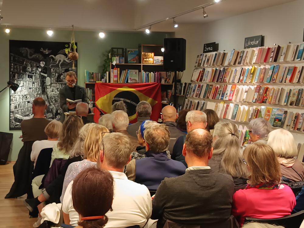 Unsere Lesung mit Lutz van Dijk zu seinem Buch „Irgendwann die weite Welt“ war komplett ausverkauft und die Nachfrage so groß, dass wir in einen größeren Raum im KuKuK umgezogen sind. Und es hat sich gelohnt! Es war eine wirklich beeindruckende Lesung. Aber nicht nur die Lesung war großartig, sondern auch der Autor selbst hat beeindruckt mit seiner offenen, positiven und inspirierenden Persönlichkeit. Danke an alle, die dabei waren, Werbung gemacht haben und mitgeholfen haben!